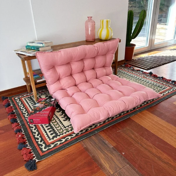 The best upholstery material for floor garden cushions is the one that’s durable and cost-effective. In this regard, there are multiple choices, including cotton, polyester, linen, sunbrella, etc.
