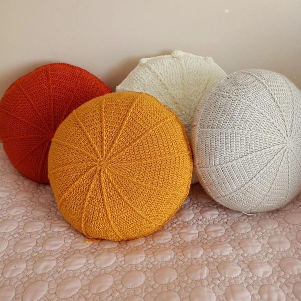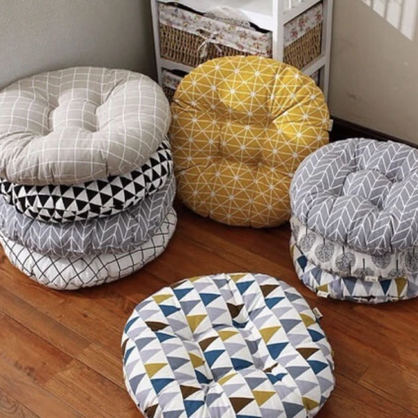 You can purchase cushions in vibrant colors and various delightful designs including pumpkin-style round cushions, round-shaped cushions with flanged/welted edges, round ball cushions, and more at our shops & online.